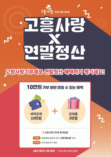 향우들의 고향사랑은 연말에도 이어져 김병진 재경강서구고흥향우회장, 송귀섭 재경중랑구고흥향우회장, 김경택 재대구·경북고흥군향우회장, 그리고 고흥군이 고향인 송정희 광주 서창농협 상임이사가 각각 고향사랑기부금 100만 원을 기탁해 고향 발전에 힘을 보탰다.