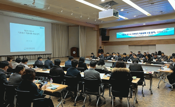 이날 최종 보고회는 광주지방기상청 관계자를 비롯한 관련부서장 등 40여명이 참석한 가운데 여수시 기후위기 중장기 적응 방향성과 추진전략 및 대처방안이 공유됐으며, 이에 따른 의견수렴 등이 진행됐다.