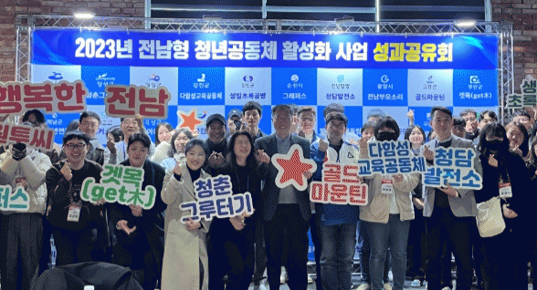 전남형 청년공동체 활성화 사업은 전남도 시책사업으로, 지역 청년과 타지 청년 5인 이상이 공동체를 구성하면 시군별로 지원 대상을 선발한다. 팀별로 800만 원의 수행경비를 지원받아 지역사회 발전을 위한 다양한 활동을 펼치도록 돕는다.