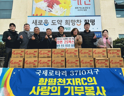 이번 기부는 도움이 필요한 이웃들이 따뜻한 겨울을 보낼 수 있길 바라는 마음에서 함평천지로타리클럽 회원들의 마음을 모아 준비됐으며 기부된 물품은 관내 취약계층과 장애인복지시설 샤론의 집에 전달될 예정이다. .