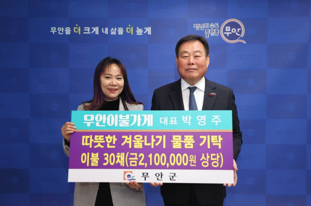무안이불가게 박영주 대표는 지난 2022년 12월에도 무안군지역사회보장협의체에 겨울이불 20채를 기탁한 바 있으며, 지역사회 나눔문화 확산에 적극 기여하고 있다.
