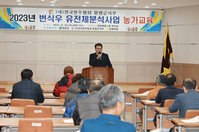 이번 교육은 번식우 유전체 정보 분석을 통한 개체 유전 능력을 추정해 함평군에 우량 한우 기반을 구축하고 한우 품질 개량을 활성화하기 위해 마련됐다.