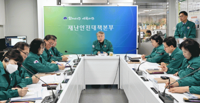 김이강 서구청장은 “밤사이 기온이 낮아지면서 결빙 구간이 많아질 것으로 예상된다”며 “중장비 투입이 어려운 이면도로 음지까지도 세밀히 살피며 주민 안전에 최선을 다해달라”고 당부했다. 또 “관이 선제적으로 움직이고 주민들이 집이나 상가 앞 제설작업에 자발적으로 참여하는 안전문화 조성에도 힘써달라”고 강조했다.