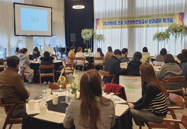 21일 시교육청에 따르면 이번 워크숍에는 기초학력전담교사는 물론 전담교사가 배치된 30개 학교 담당자도 참여해 성과 공유, 학교별 사례 나눔, 2024학년도 기초학력전담교사 운영 방향 등을 심도 있게 논의했다.