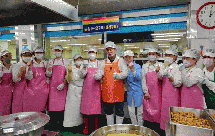 이 교육감은 이날 위생복과 위생모, 위생 마스크를 착용하고 조리종사원과 함께 학생들에게 일일이 점심을 배식하면서 “점심 맛있게 먹어요”, “잘 먹어야 건강하고 행복합니다”고 학생들을 응원했다.