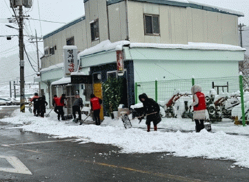 지나가는 면민 중 서문자(가명) 씨는 제설도구를 이용하여 얼어붙은 눈을 제거하는 모습을 보고 “이렇게까지 제설작업을 하는 것은 못 본 것 같은데 봉사자들이 고생이 많다”고 하면서 고마움을 전했다.
