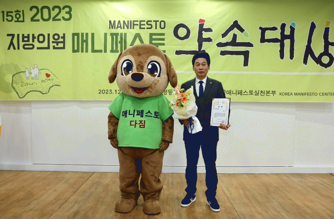 ‘지방의원 매니페스토 약속대상’은 지방의회 역량 강화 및 주민 신뢰 기반 구축을 위해 한국매니페스토가 주관했으며, 공약이행 분야와 좋은조례 분야로 나누어 공모했다.