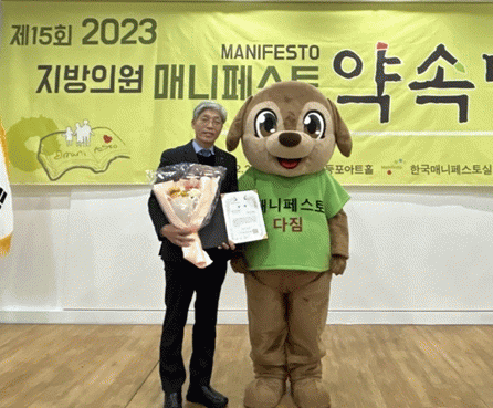 한국매니페스토실천본부에서는 지방의회 역량 강화 및 주민들의 신뢰를 쌓기 위해 매년 전국의 지방의원을 대상으로 ‘공약 이행’ 부문과 ‘좋은 조례’ 부문으로 나눠 수상자를 선정하고 있다.