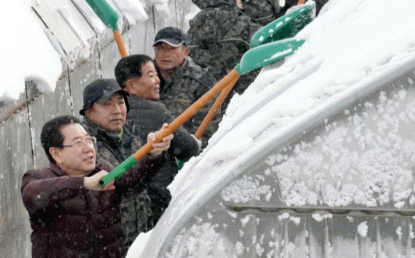 또한 현장에서 하우스 주변 제설작업 등 피해 예방을 위해 애쓰는 공무원과 자원봉사자를 격려했다.