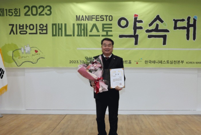 ‘2023 지방의원 매니페스토 약속대상’은 지역발전과 주민들의 복지증진을 위해 헌신적으로 노력하는 의원에게 주는 상으로 입법의 시급성, 주민의 삶의 질에 대한 영향, 지역발전 등을 심사 내용으로 평가했다.