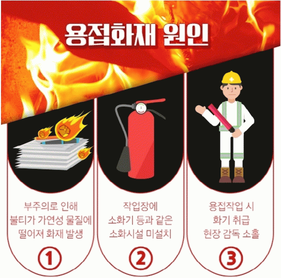 공사 현장은 환경적 특성상 가연성 물질이 많아 용접 작업 중 발생하는 불티가 옮겨붙어 대형화재로 이어질 가능성이 높고 소방시설 등이 설치되지 않아 초기 소화가 어려운 경우가 많다.