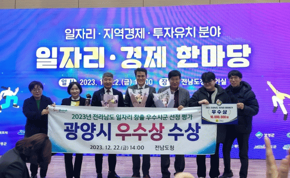 또한, 이날 광양시 소재 2개 기업이 일자리 우수기업으로 선정돼 인증패를 수여받았다. 선정된 2개 기업은 ㈜혜성티앤시, ㈜무창으로 1년간 근로자 수 증가와 청년 근로자 증가율에서 높은 평가를 받았다.