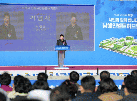 ‘남해안벨트 허브도시 순천시대를 열어가겠습니다’라는 주제로 열린 기공식은 풍물놀이와 현악 3중주, 순천시립합창단의 축하공연을 시작으로 경과보고 및 신청사 홍보영상, 기념사, 축사, 격려사 순으로 진행됐다. 이어 신청사 건립의 첫 삽을 뜨는 시삽식과 함께 K-디즈니 순천의 포부를 담은 애니메이션 퍼포먼스가 펼쳐졌다.
