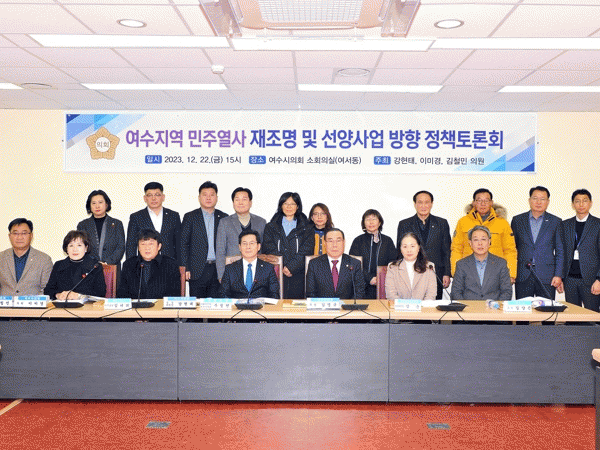 토론회 좌장을 맡은 강현태 의회운영위원장은 “지역 민주열사 선양사업이 시민들의 더 많은 관심을 받기 위해서는 관계기관과 시민단체의 소통이 중요하다”며 “민주열사를 기념하고 정신을 계승하는 데 시의회가 선도적인 역할을 해 나가겠다”며 토론회를 마무리했다.