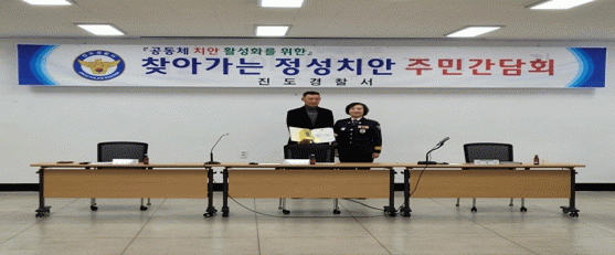 이번 간담회에서 박미영 진도경찰서장은 민경 협력 치안활동에 기여한 나배대교 이장에게 감사장을 수여 하고 섬 주민들의 애로사항 등 다양한 의겸수렴과 치안활동 협력을 당부하는 시간을 가졌다.