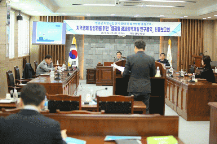 이번 연구용역은 ‘지역경제 활성화를 위한 영광형 경제정책개발 연구’를 주제로 영광군 지방산업단지 실태 및 발전방향을 모색하기 위한 것으로, 최종보고회에서는 지난 3개월간의 연구 성과를 점검하고 논의했다.