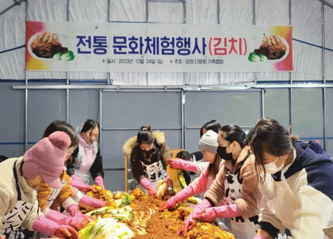 김장 체험은 결혼이주여성 30명과 가족 100여 명이 함께했으며, 김장이 끝난 후 김치, 수육 잔치국수를 나눠 먹으며 윷놀이를 즐기고 추첨을 통해 선물도 증정하는 행사도 진행했다.