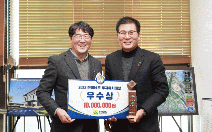 함평군은 올 한해 9곳과 투자 협약을 체결하고 투자유치 설명회 등 활발한 투자유치 활동을 펼치며 예산도 확보하는 성과를 인정받아 우수상을 수상했으며 이는 작년 장려상에 이은 2년 연속 수상이다.
