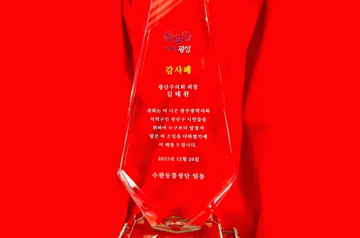 김 의장은 지난 10월 광산구의회 제283회 임시회에서 통장 모집 공고 2회 후에도 적격자가 없을 경우 예외를 두는 ‘광산구 통·반 설치 조례 일부개정조례안’을 대표 발의하여 통장의 임명 공백을 최소화하는데 기여한 공로를 인정받았다.