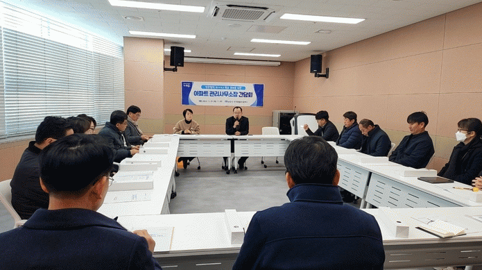 이번 간담회는 순천시 임대아파트 관리사무소장 12명이 참석한 가운데, 아파트 내 돌봄 사각지대와 이웃돕기 우수사례에 대해 공유하는 시간을 가졌다.