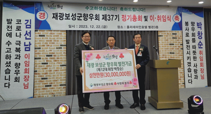 이번 정기총회는 회장 이·취임식을 포함해 고향사랑기부제 홍보 및 향우들 간 화합 및 친목을 도모하며 성황리에 마무리됐다.