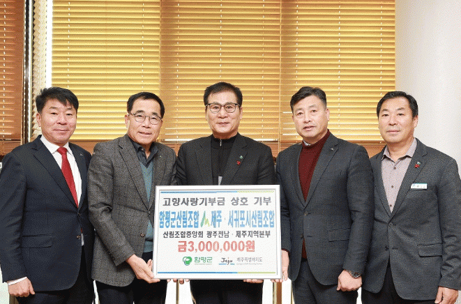 이상익 함평군수는 “인구소멸 등 지역위기를 외면하지 않고 상호 기부를 결심해 주신 제주지역 산림조합 관계자분들께 진심으로 감사드린다”며 “이번 기부를 통해 앞으로 양 지자체와 산림조합 간 상생 발전이 이루어질 수 있도록 노력하겠다”고 말했다.
