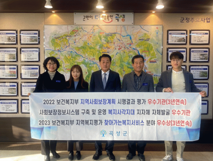 그동안 곡성군은 복지대상자 방문상담과 서비스 연계 강화, 민관협력을 통한 지역복지 강화, 복지공동체를 통한 사각지대 발굴 체계 구축, 복지위기가구 발굴.지원 등을 성실히 추진한 결과 지역의 복지 수준이 전반적으로 크게 향상됐고, 이로 인해 대외적으로 높게 평가를 받았다.