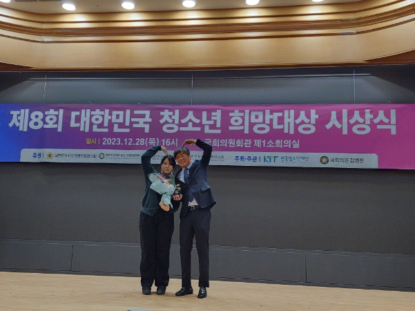 대한민국 청소년희망대상은 사단법인 한국청소년재단에서 주관하며 청소년 심사단 1,000명이 수상자를 직접 평가하고 선정하여 시상하는 상으로 청소년들의 마음을 대변하여 의정활동을 펼쳐야만 받을 수 있는 의미있는 상이다.