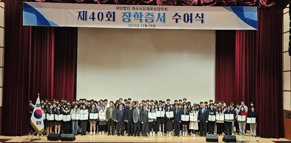 시에 따르면 이날 오후 전라남도 학생교육문화회관 대강당에서 여수지역 우수학생 장학증서 수여식이 열렸으며, 지역 우수인재로 선정된 장학생을 비롯해 학부모 등 총 200여명이 참석했다.