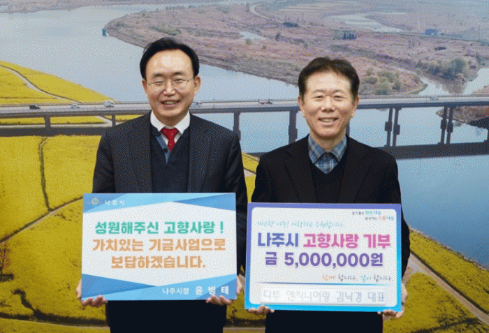 김 대표는 “나주에서 공장을 확장하며 나주를 제 2의 고향으로 생각하고 있다.”라며 “나주 발전에 조금이라도 보탬이 될 수 있어 뿌듯하다. 주변 지인들과 임직원들에게도 고향사랑기부제를 홍보하겠다.”라고 전했다.