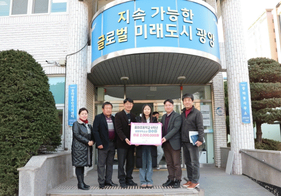 이날 이수아 학생이 전달한 광양사랑상품권 200만원은 MBC광양만권 가족콘서트 등에서 받은 상금과 2023년도 광양시 읍면동 경로위안 잔치 행사에서 어르신들에게 받은 용돈을 모아 마련한 것으로 중마동 지역 예·체능계 학생들에게 전달해 줄 것을 당부했다.