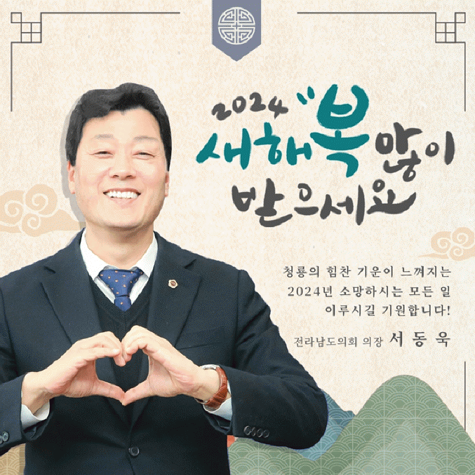 갑진년 새해에는 푸른 용의 복되고 길한 기운을 받아 도민 여러분께서 바라시는 소망과 계획했던 모든 일들이 이루어지길 진심으로 기원합니다.