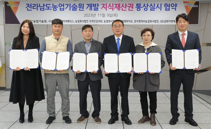 또 전남도 소유 지식재산권의 사업화를 위해 15건의 특허기술을 20개 농산업체에 유상이전해 상품개발과 시장테스트, 시범판매 중에 있다. 개발 상품은 시군 관광상품 전문매장(강황 바디클렌저 등), 전남체전·장애인체전 공식음료 지정(아따콤부차), 기내식 상품(유자빵), 수출(흑하랑 상추차·양갱·홍화순차) 등으로 글로벌 케이(K)-푸드 영역을 넓히고 있다.