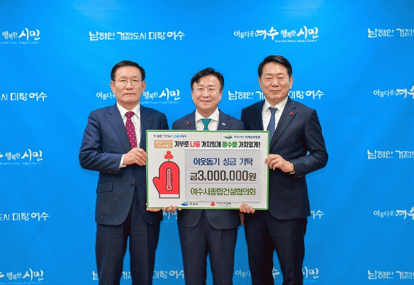 성금은 여수시종합건설협의회 임직원 일동이 연말연시를 맞아 지역사회를 위한 나눔을 실천하고자 뜻을 모은 것으로, 전남사회복지공동모금회에 지정 기탁돼 지역 내 어렵고 소외된 이웃과 사회복지시설을 위해 쓰일 예정이다.