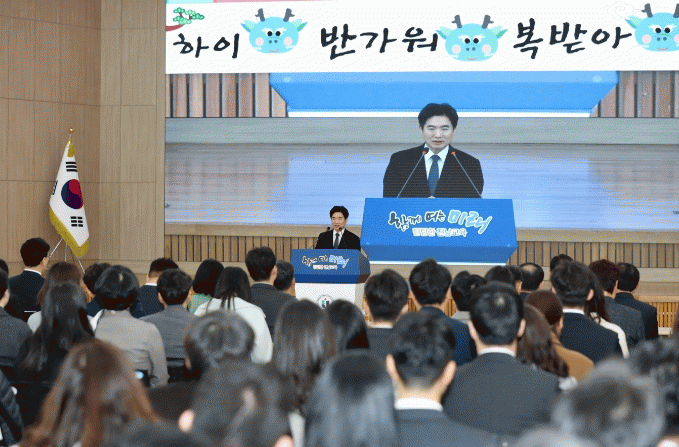 이날 시무식은 김대중 교육감을 비롯한 간부진과 1월 1일 자 본청 전입 직원 등이 참석한 가운데 진행됐으며, 현장에 참석하지 못한 직원들은 각자의 사무실에서 영상 시스템을 통해 시무식에 함께했다.