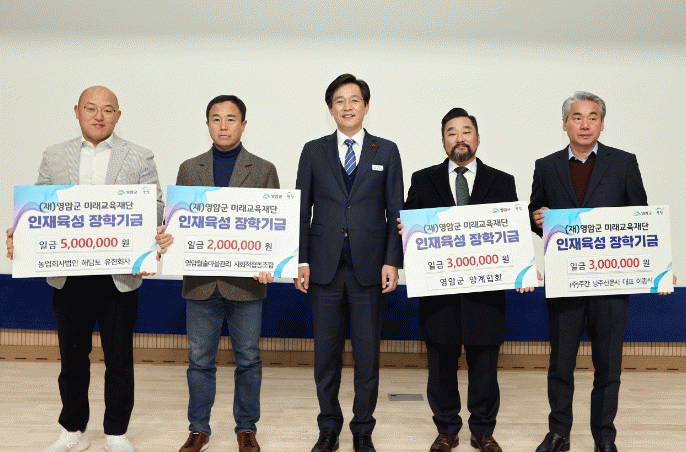 같은 자리에서 영암양계협회와 주간낭주신문사(대표 이종식)도 각각 300만 원씩을, 영암월출마을관리사회적협동조합도 200만 원을 장학금으로 기부했다.