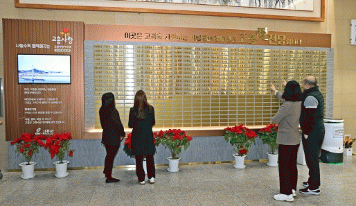 특히, 군청 1층 로비에 마련된 오프라인 ‘고흥愛전당’은 100만 원 이상 기부자들을 대상으로 고흥군 마을 수를 상징하는 515개의 명판을 부착할 수 있도록 제작됐으며, 시행 첫해에만 329개의 명판이 부착됐다.