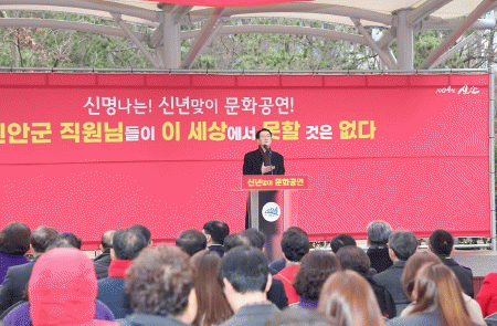 이날 시무식은 박우량 신안군수, 김혁성 신안군의회 의장, 군의원, 신안부군수를 포함한 400여 명의 공직자들이 압해읍 1004섬 분재정원에 모여, 애기동백꽃이 만개한 화려한 배경 속에서 새해를 맞이했다.