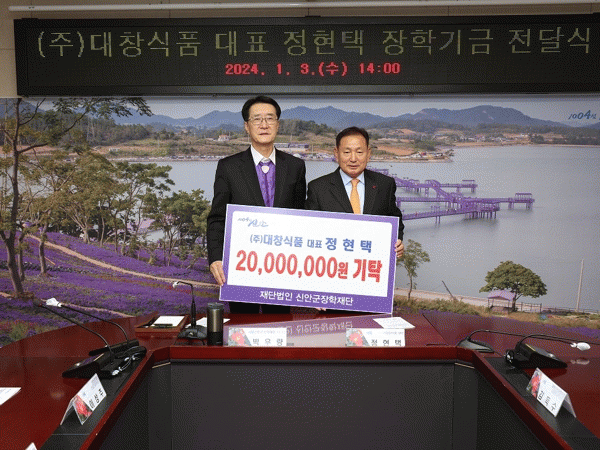 한편, ㈜대창식품 정현택 대표는 암태면 도창마을 출신으로 2017년 전라남도사회복지공동모금회 1억 원 이상 고액 기부자 모임인 아너소사이어티 50호 회원으로 꾸준한 기부와 선행을 이어가고 있다.