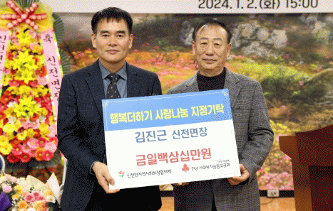 올 1월1일자로 신전면장에 부임한 김진근 면장은 감사의 마음과 지역의 어려운 이웃을 위한 사랑을 담아 후원금 130만원을 기탁했다. 후원금은 본인 명의 100만원, 부인 명의 10만원, 두 자녀 명의 20만원으로 이뤄졌다.