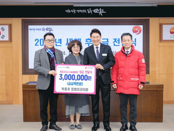 이날 기탁식에 박종후 원장을 대신해 참여한 서혜석 사모님은“그동안은 암환자 등 환우 치료를 위한 기부를 해왔지만 불우이웃돕기 성금은 처음이다. 내년에도 꾸준히 성금 기부에 참여하겠다”고 말했다.