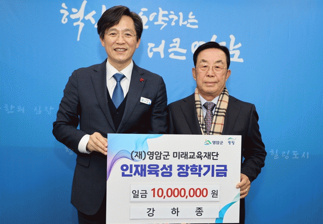같은 날 영암군민 강하종 씨와 영암군산림조합도 각각 1,000만 원과 500만 원을 (재)영암군미래교유재단에 기부했다.