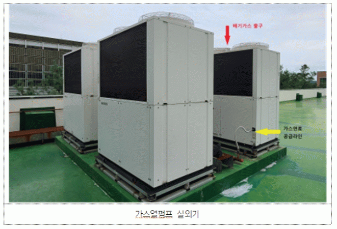 가스열펌프(GHP)는 전기 대신 도시가스 또는 LPG가스를 이용해 압축기를 구동하는 냉.난방 시설이다.