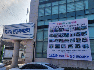 박선영 죽교동장은 “우리 지역의 어려운 이웃을 생각하고 사랑과 관심을 보여주신 후원자분들께 감사한 마음을 표현하고자 현수막을 게시하게 됐으며,올해도 많은 후원자분들이 함께 동참해주셔서 온정이 넘치는 따뜻한 죽교동을 만들어 나가기를 바란다”고 말했다.