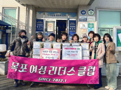 여순임 회장은 “모두가 어렵고 힘든 시기이지만 새해를 맞이하여 목포여성리더스클럽의 회원들이 기쁘게 준비한 마음을 즐겁게 받아주시면 좋겠다. 힘들었던 작년 한 해를 털어내고 모두 새해 복 많이 받으시길 바란다”고 말했다.