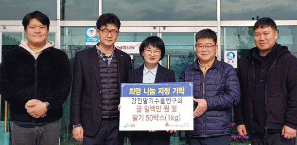 기부금은 사회복지공동모금회와 연계해 강진군 저소득층 및 사회복지시설에 지원되며, 딸기 50박스는 장애인 시설에 전달됐다.