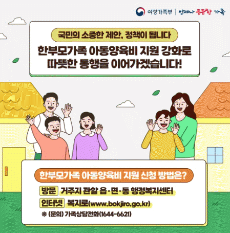 유미자 전남도 여성가족정책관은 “저소득 한부모가족의 열악한 양육환경과 경제적 여건을 고려할 때 두텁고 촘촘한 복지서비스가 필요하다”며 “올해부터 확대되는 한부모가족 지원이 자녀 양육과 자립의 밑거름이 되길 바란다”고 말했다.