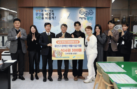 남도맛집지원협동조합은 광산구 학교급식 식재료를 공급하는 업체로, 수익 사회적 환원과 지역 장애인의 사회 활동 지원을 위해 식사권을 지원했다.