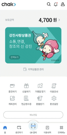 강진사랑상품권을 수령하려면 Chak앱을 ‘구글플레이’ 또는 ‘앱스토어’를 통해 미리 설치하고 회원가입이 되어 있어야 한다.