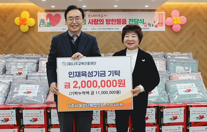 나주시는 최근 여성단체협의회에서 530만원 상당 방한용품과 라면, 인재육성기금 200만원을 각각 기탁했다고 10일 밝혔다.